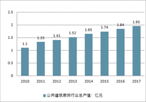 2010-2017年中國公共建筑裝飾行業(yè)總產(chǎn)值走勢
