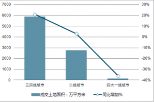 2019年中國(guó)各級(jí)城市成交土地面積及增長(zhǎng)情況