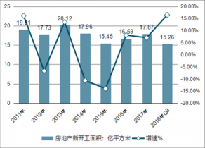 2011-2018年1-9月中國(guó)房地產(chǎn)新開工面積及增速走勢(shì)