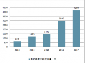 2013-2017年高功率激光器進口情況