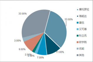 從我國專網(wǎng)通信行業(yè)市場份額來看,摩托羅拉占據(jù)較大部分的市場份額,占比為33%;其次是海能達(dá),占比為11%;歐宇航位居第三,占比為9%;建伍排名第四,占比為7%。