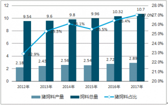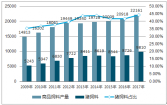 2009-2017年我國豬飼料產(chǎn)量份額分析