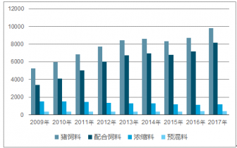 2009-2017年我國分類豬飼料產(chǎn)量走勢圖