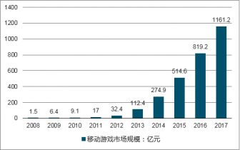 2008-2017年我國(guó)移動(dòng)游戲銷(xiāo)售收入走勢(shì)