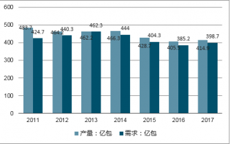 2017年我國方便面產(chǎn)量約為414.9億包,年度需求為389.7億包,國內(nèi)方便面消費市場規(guī)模約為528.4億元。