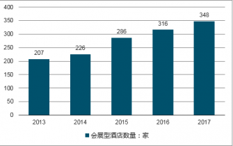 近幾年,隨著國內(nèi)展覽會(huì)數(shù)量的增長,國內(nèi)會(huì)展場館建設(shè)速度加快,會(huì)展型酒店隨著會(huì)展場館數(shù)量不斷增長,從2013年的207家增長到2017年的348家。