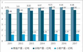 根據(jù)國(guó)家統(tǒng)計(jì)局對(duì)全國(guó)31個(gè)省(區(qū)、市)抽樣調(diào)查和農(nóng)業(yè)生產(chǎn)經(jīng)營(yíng)單位的全面統(tǒng)計(jì),2017年全國(guó)糧食總產(chǎn)量61791萬(wàn)噸(12358億斤),比2016年增加166萬(wàn)噸(33億斤),增長(zhǎng)0.3%;2016年我國(guó)谷物產(chǎn)量為56538.1萬(wàn)噸,2017年國(guó)內(nèi)谷物產(chǎn)量為56454.9萬(wàn)噸,產(chǎn)量較2016年同期下降0.16%;2016年我國(guó)小麥產(chǎn)量為12884.50萬(wàn)噸,2017年國(guó)內(nèi)小麥產(chǎn)量為12977.40萬(wàn)噸,產(chǎn)量較2016年同期增長(zhǎng)0.72%;2017年食用油產(chǎn)量6071.8萬(wàn)噸,比2016年減少835.7萬(wàn)噸。