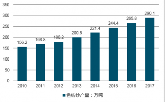 2017年,我國色紡紗總產量達到290.1萬噸,其中產能大多集中于江蘇和浙江地區(qū)。目前,江浙地區(qū)的色紡紗生產已大約占到當地棉紡加工能力的三分之一,山東少數企業(yè)近些年剛剛涉足色紡紗生產,因而產量相對較小。