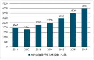 在國家一系列利好政策的不斷刺激下,2016年我國水污染治理行業(yè)市場規(guī)模達到3500億元,2017年我國水污染治理行業(yè)市場規(guī)模在3998億元左右。