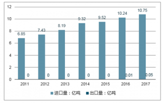 2011-2017年我國鐵礦石進(jìn)出口供需平衡