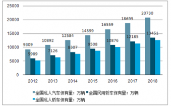 2018年末全國民用汽車保有量24028萬輛(包括三輪汽車和低速貨車906萬輛),比上年末增長10.5%,其中私人汽車保有量20730萬輛,增長10.9%。民用轎車保有量13451萬輛,增長10.4%,其中私人轎車12589萬輛,增長10.3%。