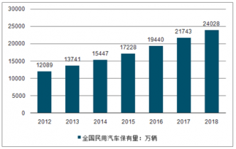2012-2018年中國民用汽車保有量統(tǒng)計圖
