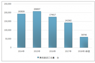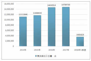 2016年我國集線器進(jìn)出口貿(mào)易總量14805531臺,2017年進(jìn)出口貿(mào)易總量14931262臺;2018年1季度進(jìn)出口貿(mào)易總量3545575臺。