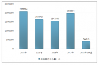 2016年我國路由器進出口貿(mào)易總量62175737臺,2017年進出口貿(mào)易總量58405920臺;2018年1季度進出口貿(mào)易總量13833556臺。