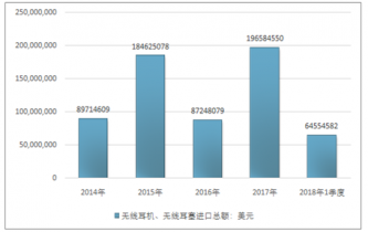 2016年我國無線耳機(jī)、無線耳塞進(jìn)口總額87248079美元,2017年進(jìn)口總額196584550美元;2018年1季度進(jìn)口總額64554582美元。