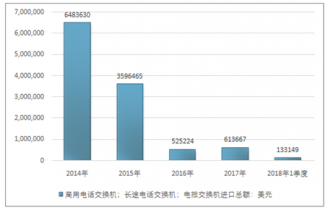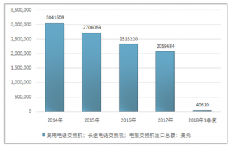 2016年我國局用電話交換機;長途電話交換機;電報交換機出口總額2313220美元,2017年出口總額2059684美元;2018年1季度出口總額40610美元。