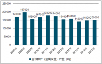 2007-2017年全球銻礦(金屬含量)產(chǎn)量
