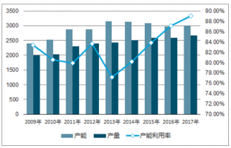 2009-2017年我國(guó)純堿產(chǎn)能及產(chǎn)能利用率統(tǒng)計(jì)