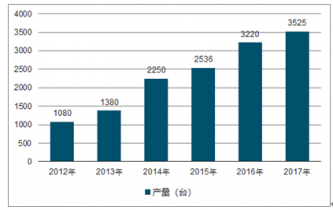 2012-2017年中國(guó)醫(yī)用磁共振成像設(shè)備行業(yè)產(chǎn)量情況