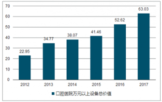 隨著我國口腔醫(yī)院數量以及口腔護理業(yè)務規(guī)模的增長,我國口腔億元設備規(guī)模呈現(xiàn)出加速上升的發(fā)展趨勢,2017年,全國口腔億元萬元以上設備總價值63.03億元,同比增長19.78%。