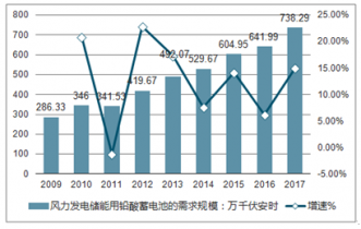 2009-2017年風力發電儲能用鉛酸蓄電池的需求規模走勢