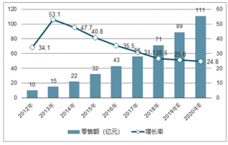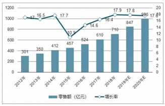 2012-2020年中國嬰兒紙尿褲市場的零售額走勢
