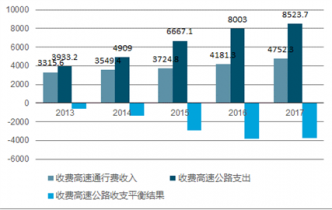 2013-2017年通行費(fèi)收支平衡表(億元)