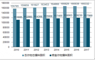 2010-2017年中國(guó)總播種面積與糧食作物播種面積走勢(shì)圖