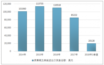 2016年我國(guó)麻黃堿及其鹽進(jìn)出口貿(mào)易總額110518美元,2017年進(jìn)出口貿(mào)易總額85222美元;2018年1季度進(jìn)出口貿(mào)易總額20128美元。