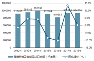 2012-2018年中國玻璃纖維及其制品進口金額統(tǒng)計圖