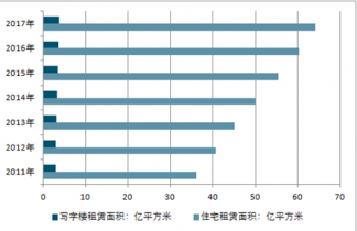 2011-2017年中國住宅租賃面積及寫字樓租賃面積走勢
