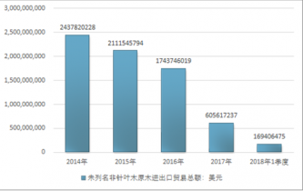 2014-2018年1季度未列名非針葉木原木進(jìn)出口貿(mào)易總額走勢(shì)圖(單位:美元)