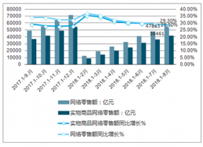 2017-2018年中國(guó)網(wǎng)絡(luò)零售額及增長(zhǎng)速度