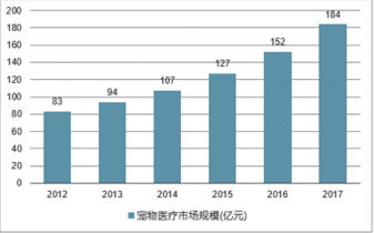 2012-2017年中國(guó)寵物醫(yī)療市場(chǎng)規(guī)模走勢(shì)