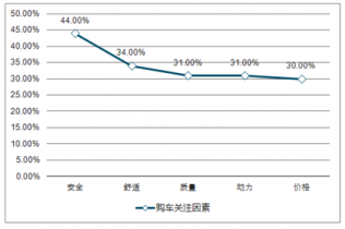 全國消費者購車關注因素在區(qū)域上有一定的差異,但整體來看,安全性(44%)舒適性(34%)與質(zhì)量(31%)是消費者最為看重的因素。