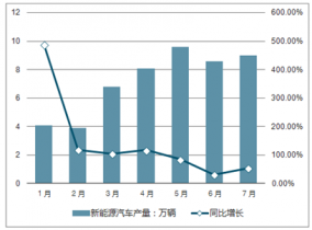 據(jù)統(tǒng)計(jì)數(shù)據(jù)顯示, 近年來(lái)我國(guó)新能源汽車產(chǎn)量快速增長(zhǎng), 從2013年的1.8萬(wàn)輛增長(zhǎng)至2017年79.4萬(wàn)輛, 漲幅達(dá)4311%。 2019年新能源汽車生產(chǎn)仍保持高速增長(zhǎng), 1-7月累計(jì)產(chǎn)量達(dá)50.4萬(wàn)輛, 同比增長(zhǎng)85%。
