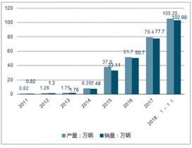 2013-2018年1-11月中國新能源汽車產(chǎn)銷規(guī)模走勢