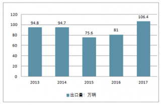 2017年, 汽車整車出口表現(xiàn)也明顯好于上年, 出口量繼2012年后再超百萬, 共出口106.38萬輛, 同比增長31.37%。