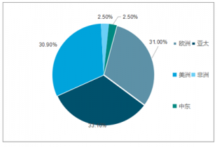 2017年全球各區(qū)域市場旅游收入市場占比情況