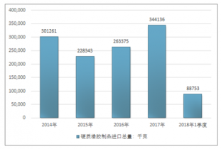 2016年我國硬質橡膠制品進口總量263375千克,2017年進口總量344136千克;2018年1季度進口總量88753千克。