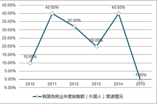 韓國免稅業(yè)年度銷售額(外國人)增速情況