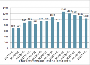 2018 年 6-7 月韓國免稅業(yè)月度銷售額(外國人)同比高速增長