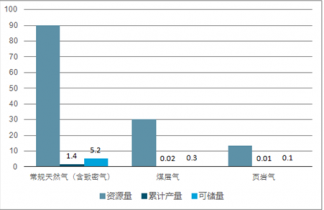 我國(guó)各類(lèi)天然氣資源量、累計(jì)產(chǎn)量及可儲(chǔ)量情況(單位:萬(wàn)億立方米)