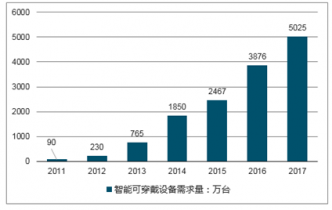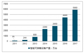 2011-2017年中國智能可穿戴設(shè)備行業(yè)產(chǎn)量情況