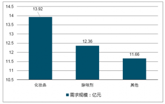 2017年我國(guó)化妝品行業(yè)對(duì)鋁質(zhì)氣霧罐需求規(guī)模達(dá)13.92億元,除味劑產(chǎn)業(yè)需求規(guī)模達(dá)12.36億元。