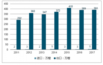 2011-2017年我國木門產(chǎn)品進出口統(tǒng)計圖