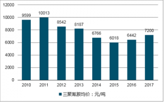 2010-2017年中國密胺(三聚氰胺)產(chǎn)品平均價(jià)格走勢(shì)