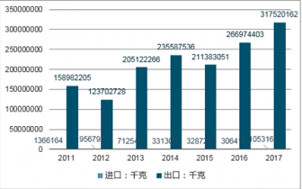 2011-2017年中國三聚氰胺進(jìn)出口情況
