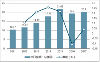 2011-2017年我國(guó)提取物出口額及其增長(zhǎng)率分析