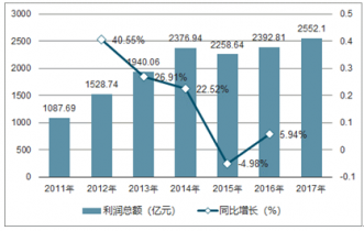 2011-2017年環(huán)保設(shè)備行業(yè)利潤總額變化情況(億元)